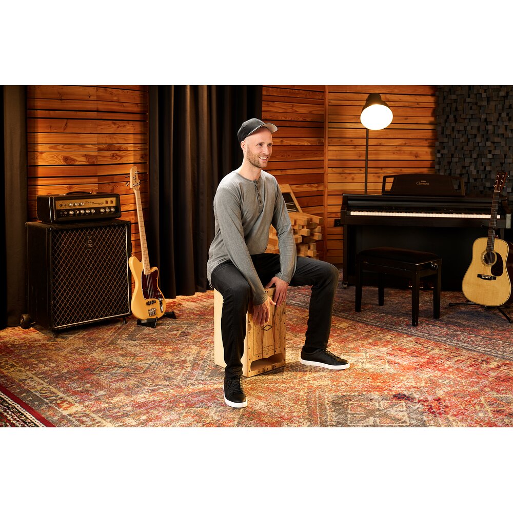 The exquisite Limba playing surface is rounded at the corners and sanded down to form thumb notches where your hands lay in their natural position. This gives you exceptional contact with the Cajon along with more comfort.