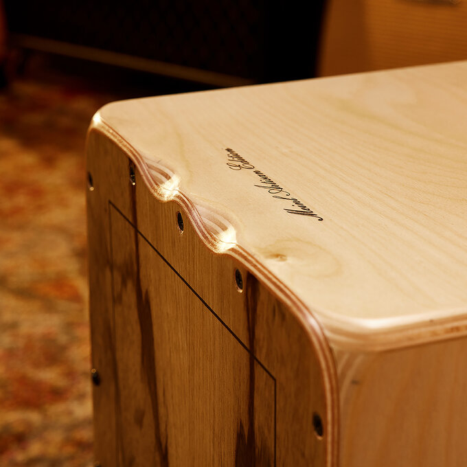 The Artisan Edition Cantina Line Limba Cajon features a forward projecting sound port in place of the traditional rear-facing style. This results in an enhanced bass note projection, particularly desirable for live and unplugged situations.