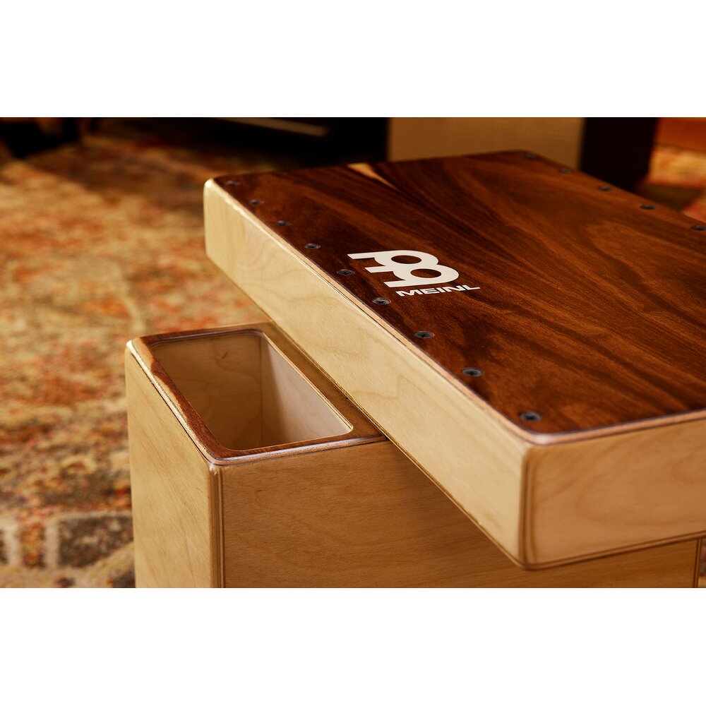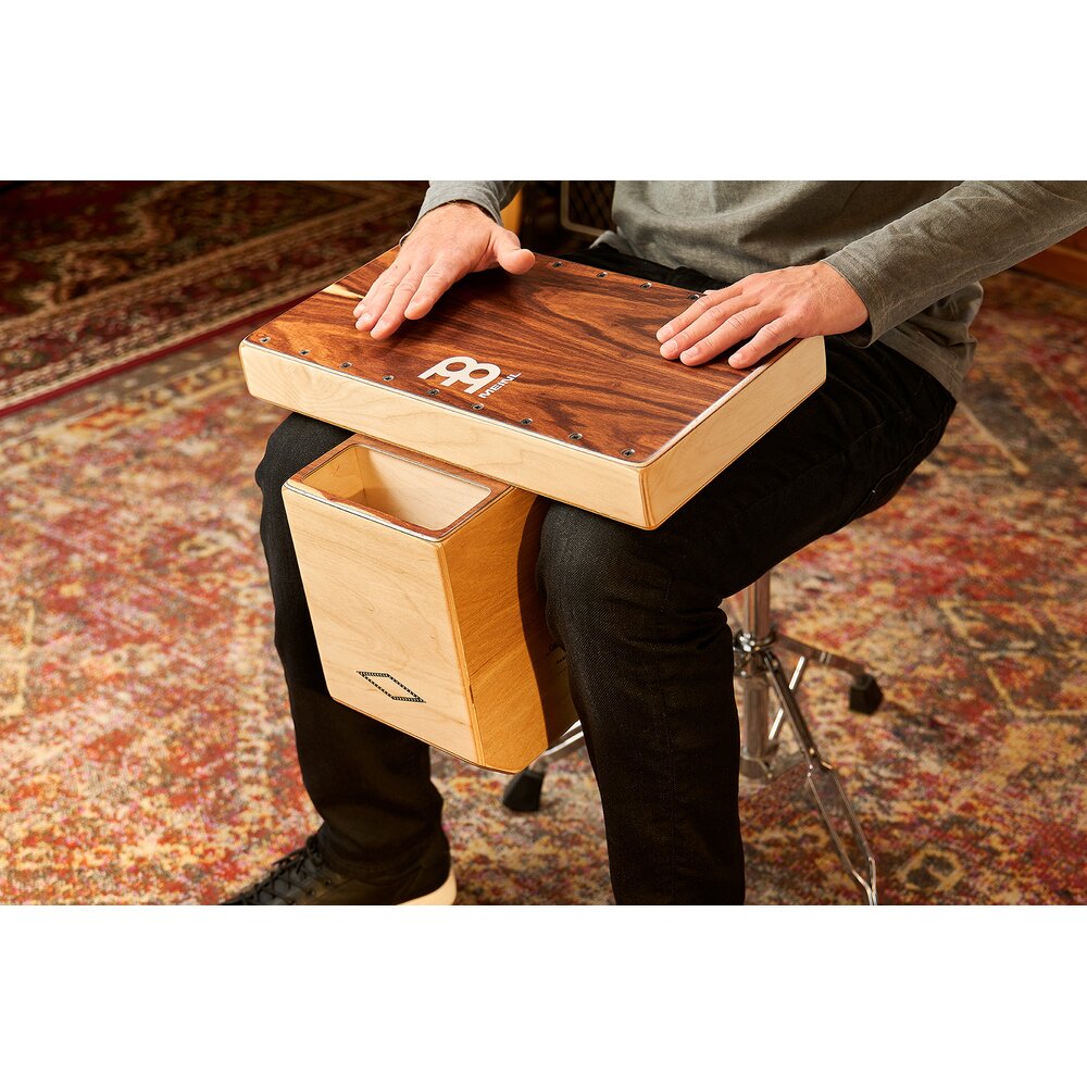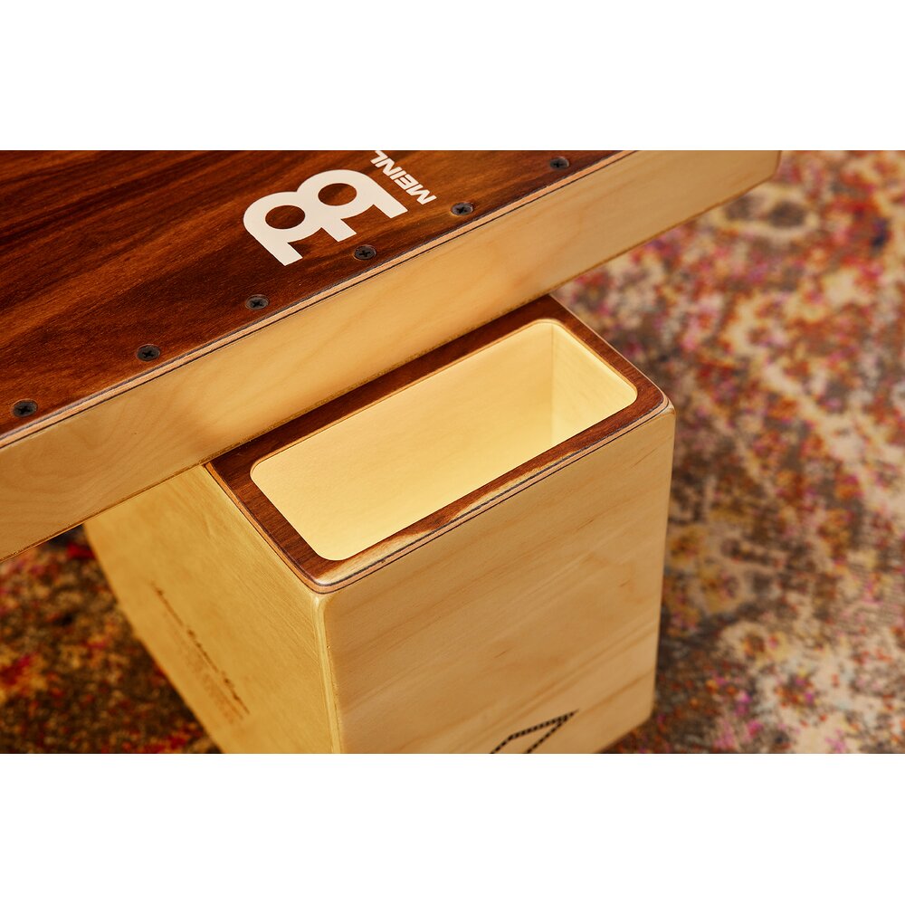 Made in Spain with uncompromising craftsmanship for the most discerning of players, the MEINL Artisan Edition Slaptop Cajon is built with features that elevate its sound. The enlarged 6-ply Baltic Birch body with upward facing front port deepens bass notes, while the elegant Palo Santo playing surface dishes out crisp snare and slap tones. Equipped with eight pre-tuned custom micro-coiled steel cajon strings that span the interior of the playing surface for a sensitive snare effect. The unique shape of MEINL Slaptop Cajons brings the striking surface nearer to the player for an upright playing position with forward sound projection.