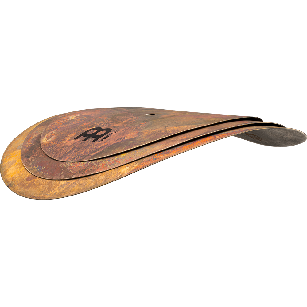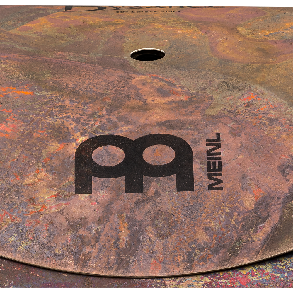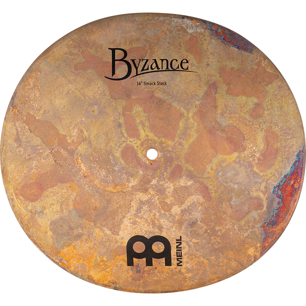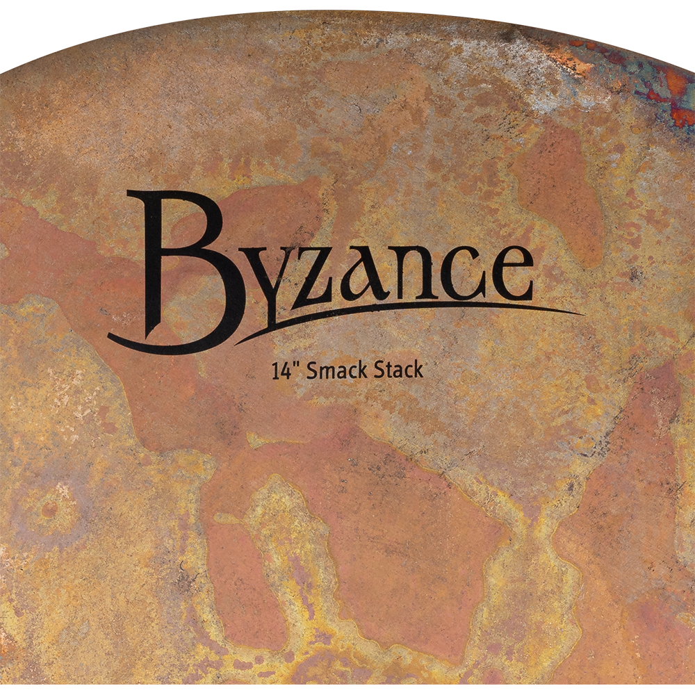 The Byzance Vintage Smack Stack features three B20 bronze discs shaped to create a distinctive sound effect. The stack can be manipulated by adjusting the tension of the cymbal stand’s wing nut. Increased tension produces a crisp attack and short decay ideal for quick accents, while loose settings yield a longer sustain. Works well when paired with a snare drum for enhanced back beats, or as an alternative to your snare altogether. The discs are sized 10”, 12”, and 14”.