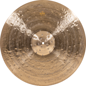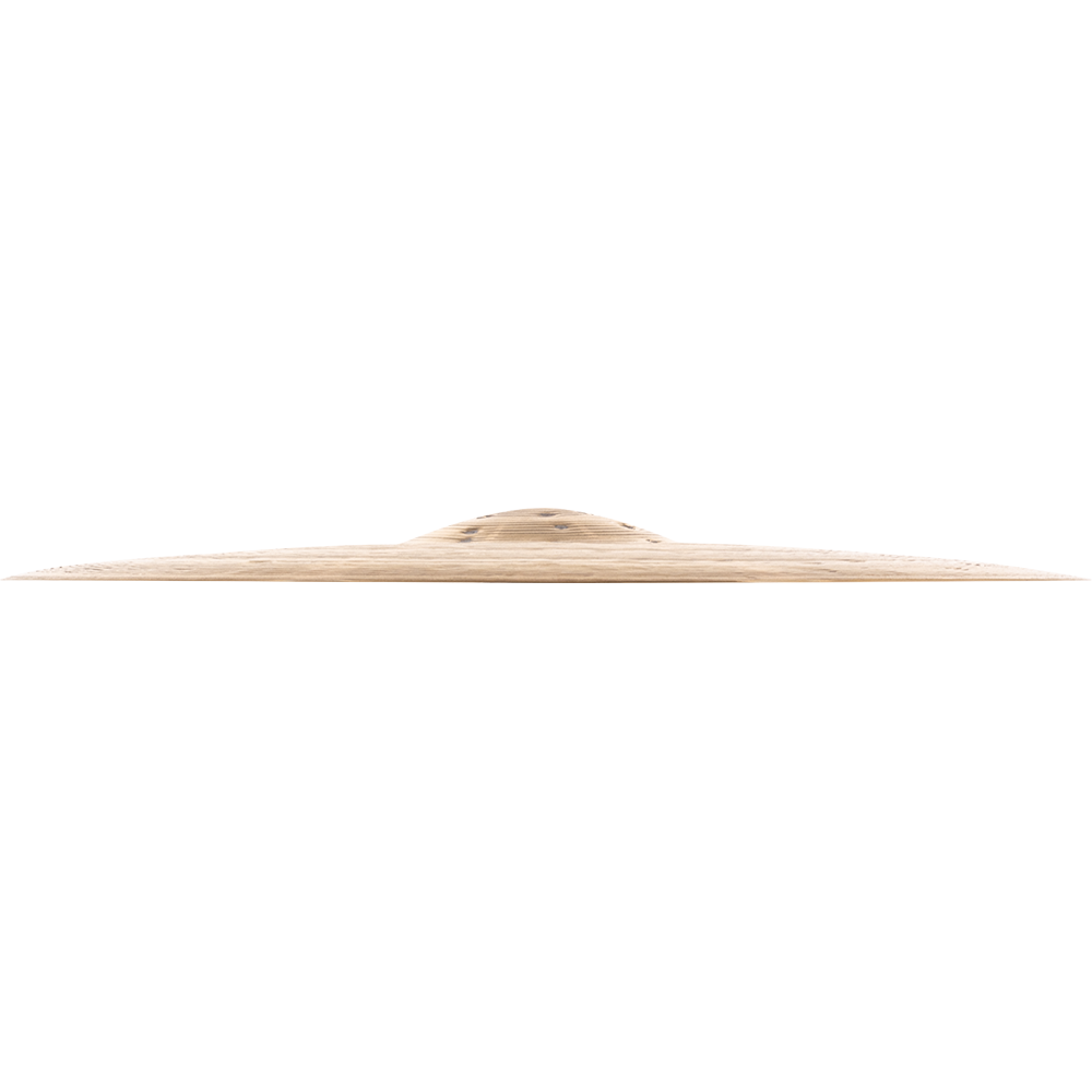 Extensive hand-hammering and fully lathed surface. Medium weight, full bodied sound with dark and explosive response that decays quickly. Great as a light ride too.