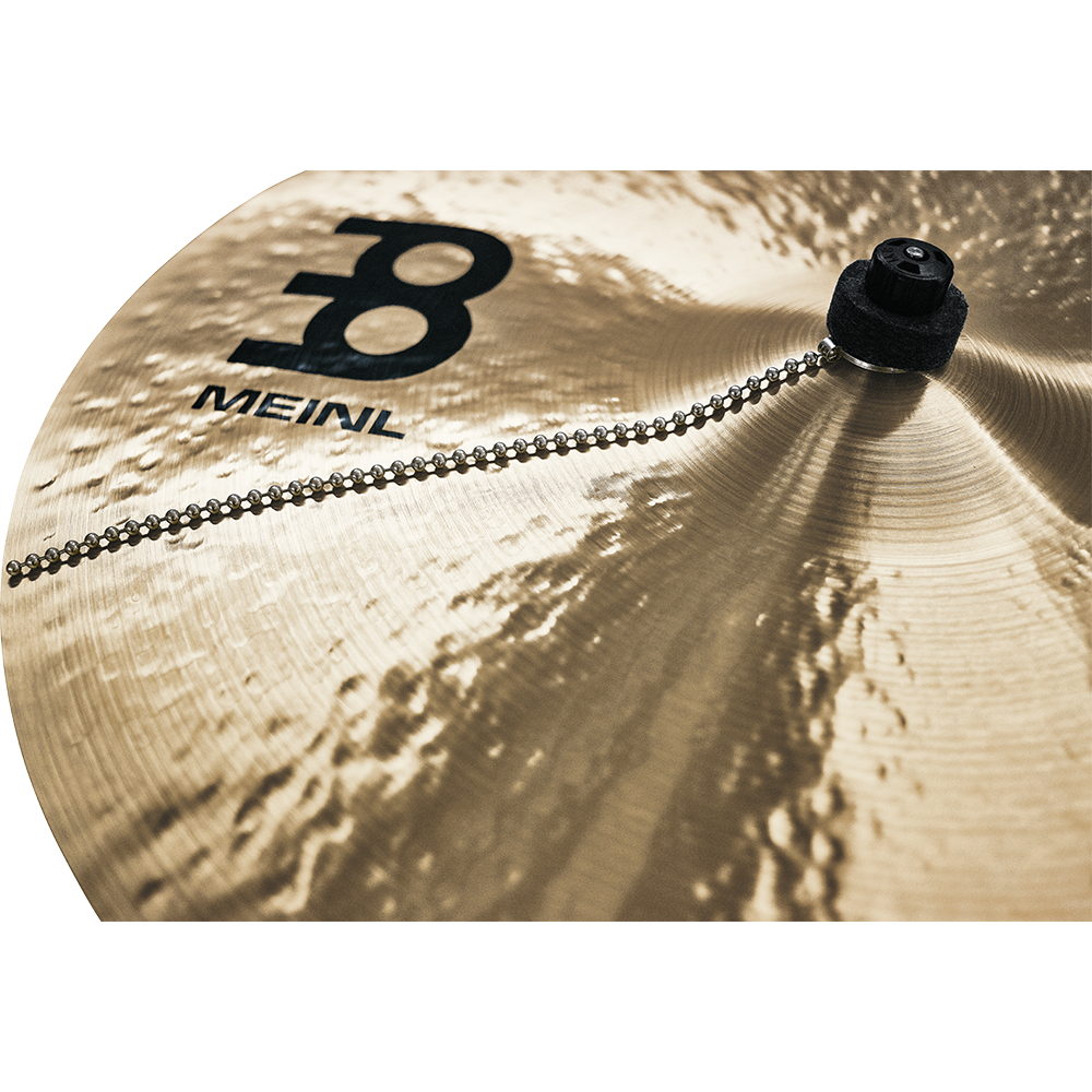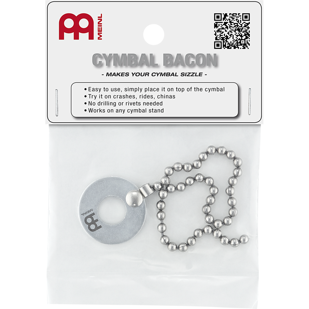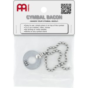 The Meinl Cymbal Bacon adds a sizzle sound to any ride, crash, or effect cymbal in your setup. From traditional and brilliant to raw hand hammered cymbals, the lightweight Meinl Cymbal Bacon adds an instant effect without harming cymbal surfaces or dampening cymbal sustain. The thin washer is made to fit on any cymbal stand and may be placed underneath or on top your cymbals felts (or use without felts). This simple design allows you to grab the Cymbal Bacon and place on any cymbal throughout your performance with no hassle. Instead of drilling your cymbals to add metal rivets, the 10 ½” stainless steel beaded chain will bounce on the top of your cymbal, providing a sizzle sound that can be used in any setting from jazz and funk to fusion and pop.
