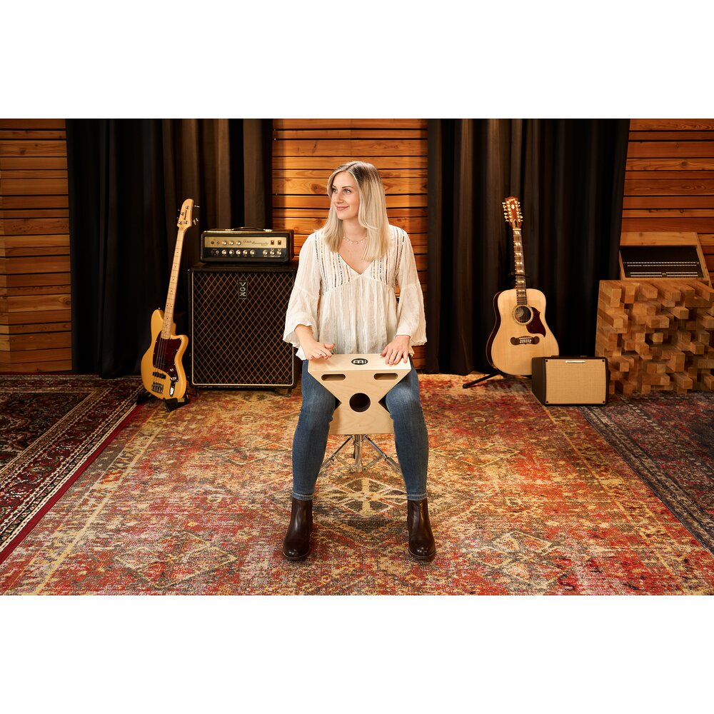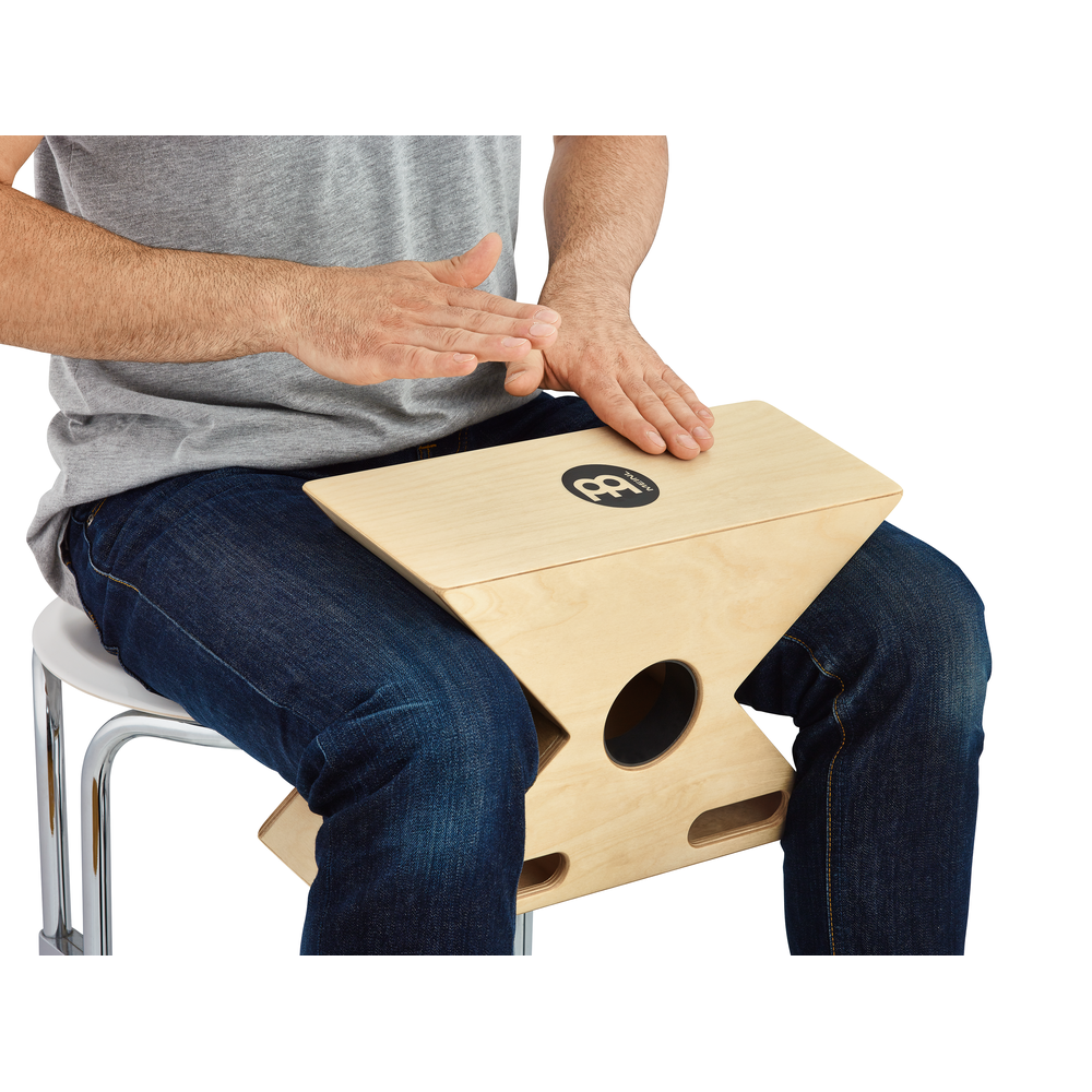 The X-shaped Hybrid Slap-Top Cajon features not only a unique and comfortable design, but contrasting playing surfaces on opposite sides to give players different sonic and dynamic alternatives. One side of the cajon is equipped with internal snares to sound like a snare cajon with bass and cutting slaps. The other side features high and low pitched playing areas to sound like a bongo cajon. Flip the Hybrid Slap-Top Cajon around as desired throughout your set to discover different tones to add to your groove!