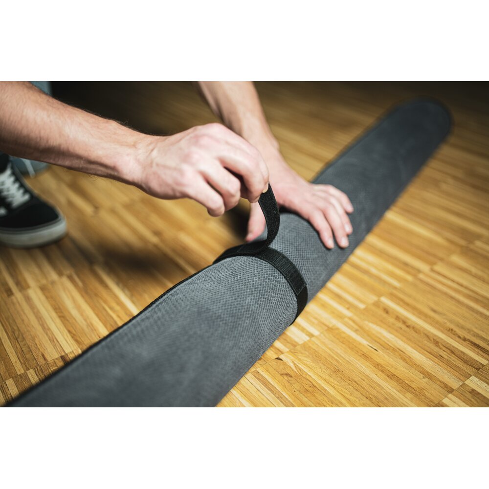 Includes a bag and equipped with a strap to roll the rug up for easy transport.