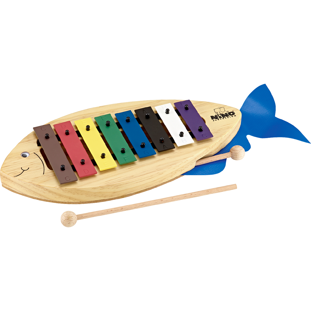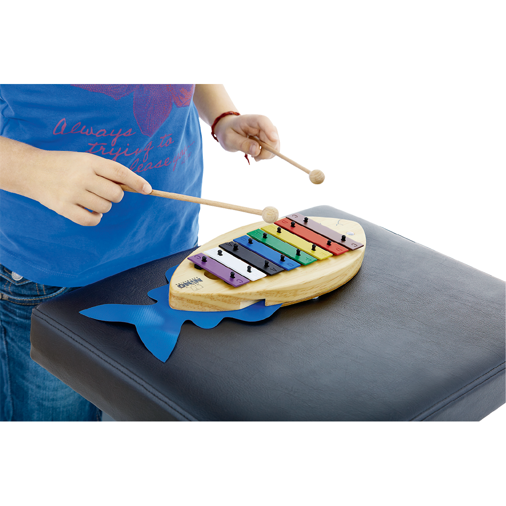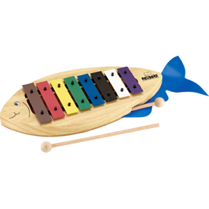 The NINO® Glockenspiel is a child-friendly way to start out with music. The jolly fish has colourful keys tuned to a scale of c d e f g a b c’. The keys may be removed for simplicity and later replaced as your child develops confidence. All corners are contained inside the rounded profile of the wooden body. The googly eye and flapping blue tail make the “Fish” Glockenspiel a charming and entertaining character!