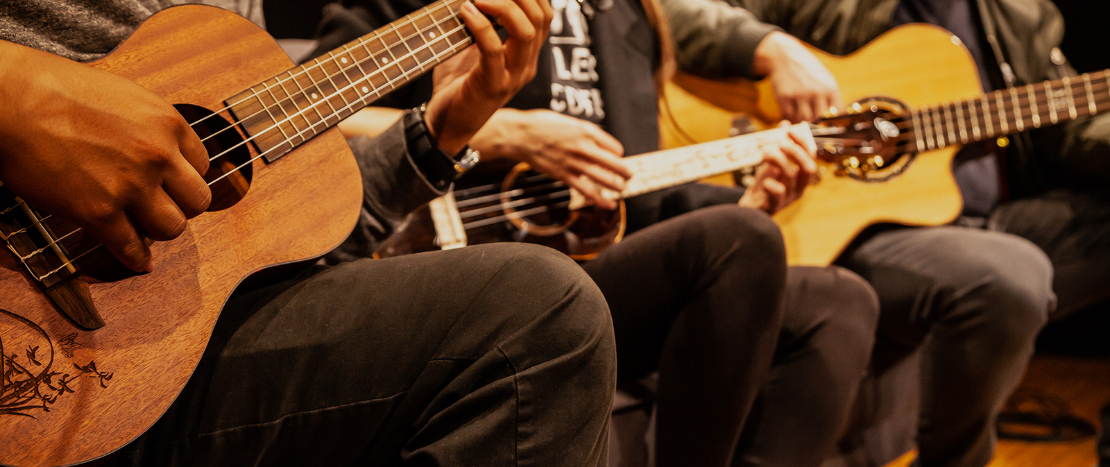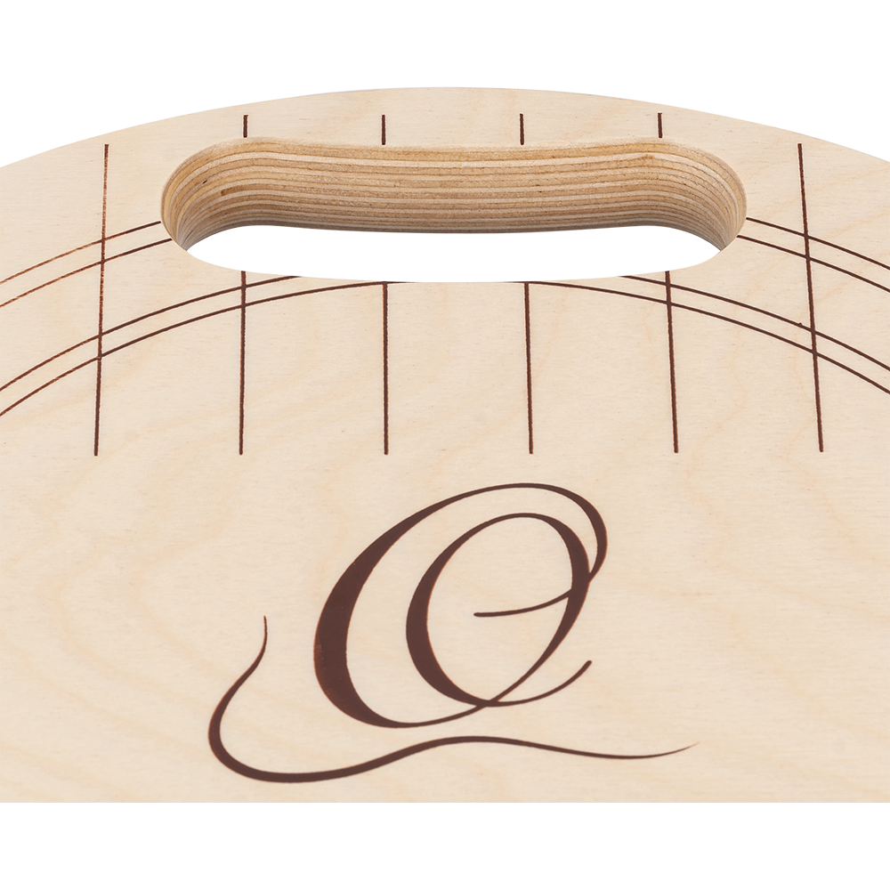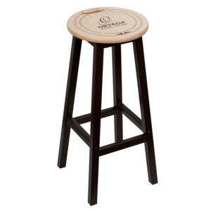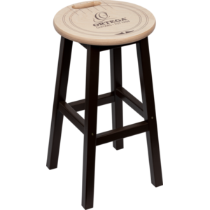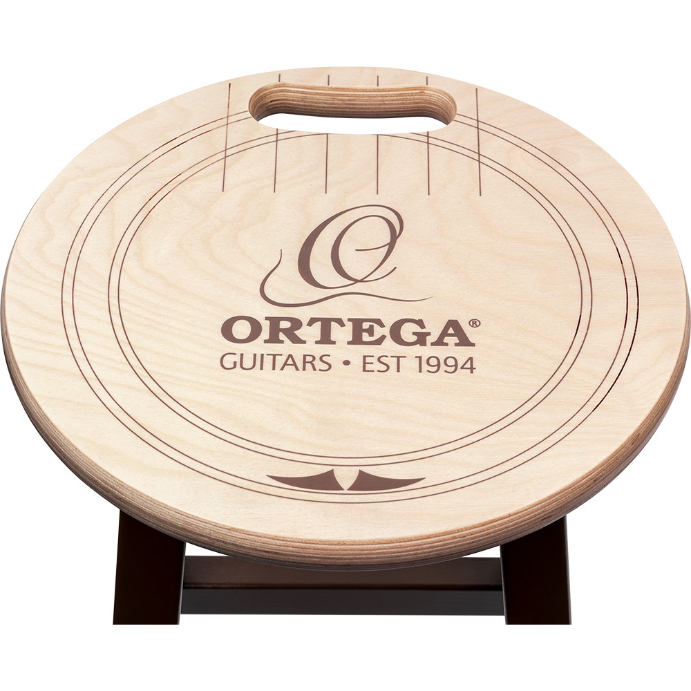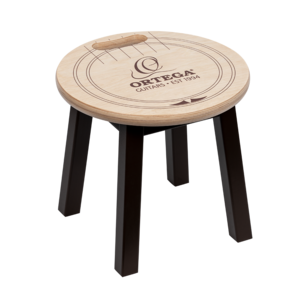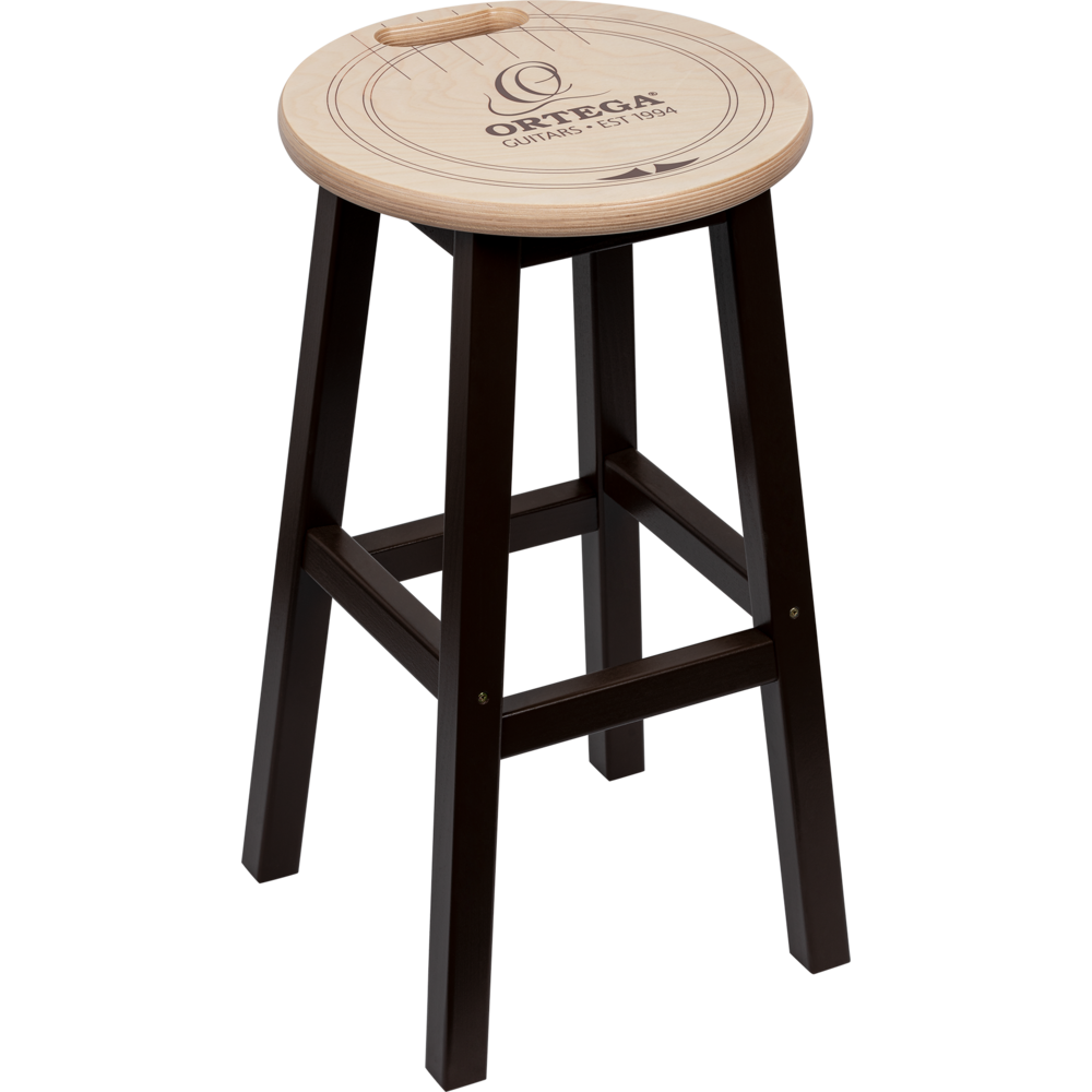 Solid wood barstool with Ortega soundhole design and comfortable carrying handle.