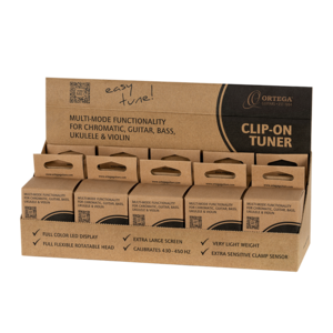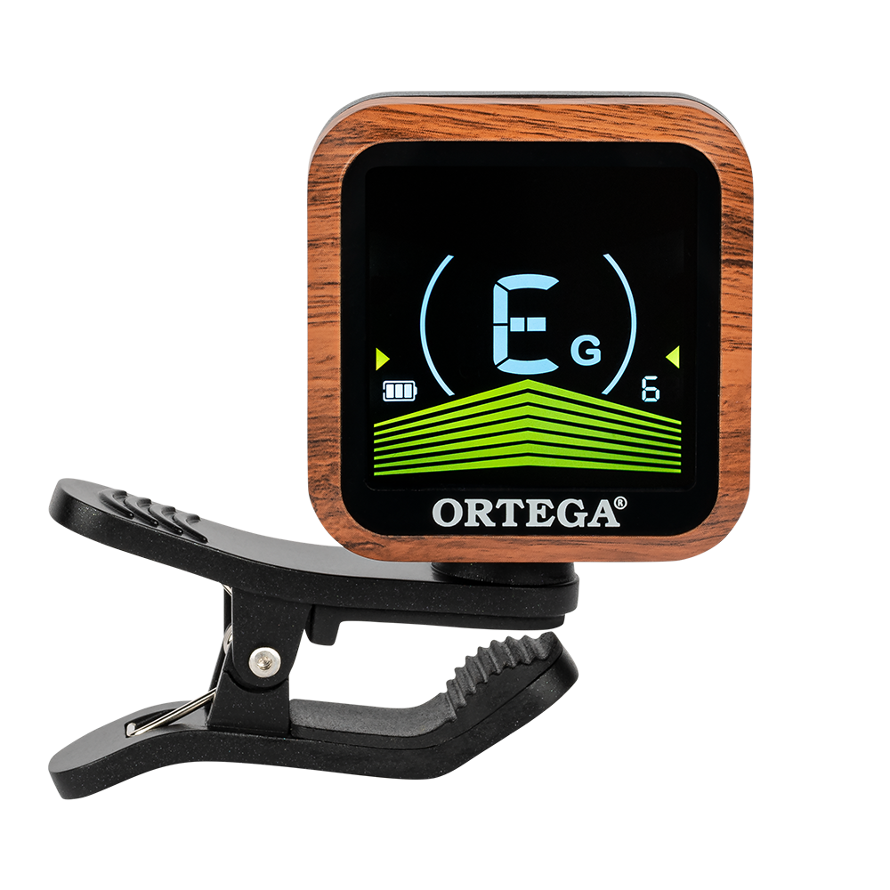 The OETRC multi-mode calibration clip-on tuner for chromatic, guitar, bass, and ukulele. The rechargeable tuner has a very bright and clear VA-LED (vertical alignment) display.