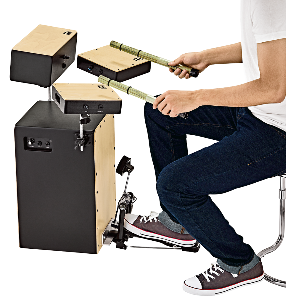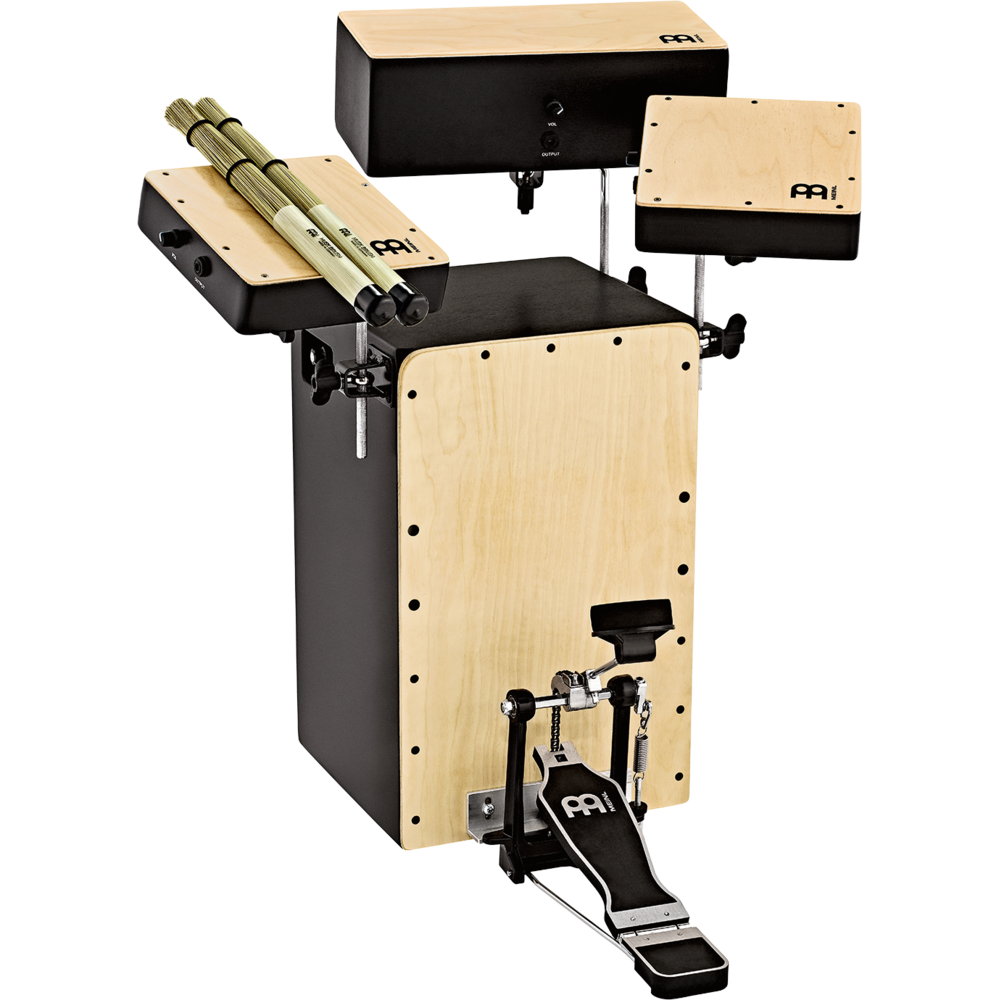 - Create cocktail-style acoustic cajon kit or percussion set ups includes the MEINL Cocktail Cajon, along with the MEINL Pickup Snare, Bongo Cajon and Tom Taps Accessories include a bass drum pedal with beater and a pair of Husk Brushes