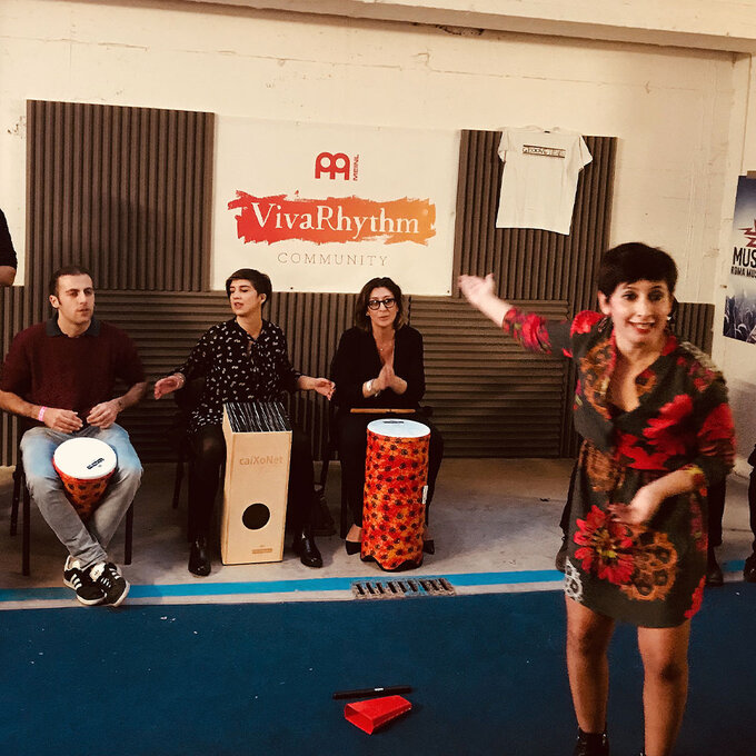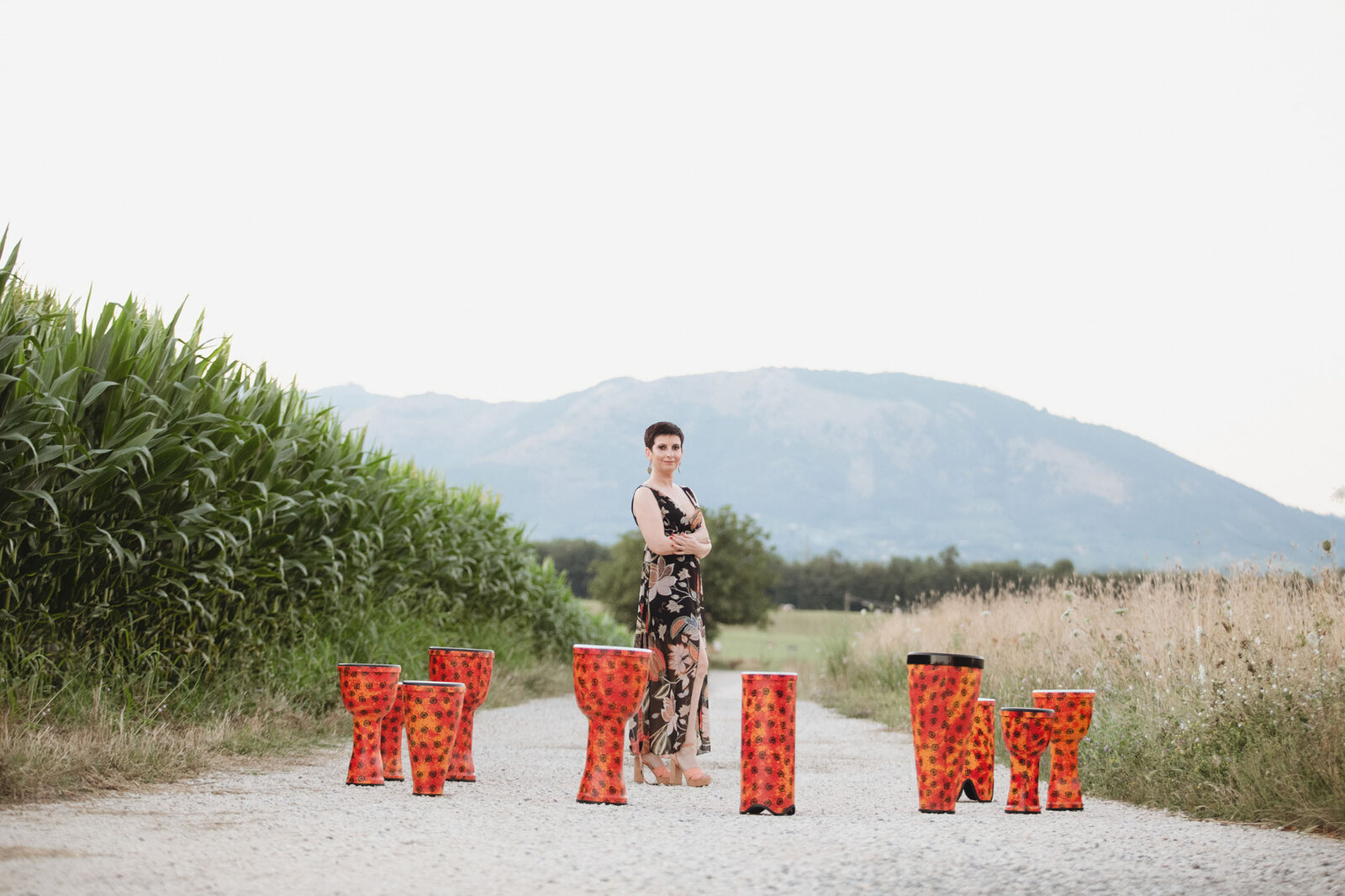 Alessandra Massari has approached the world of percussion instruments since the age of 19, during a long tour in Togo, Western Africa. There, she got fascinated by the central role of music in the local population's daily life: on that occasion, she was able to catch both the communicative aspect and the universal message of it. Back in Italy, she decided to take up studying percussions with the teacher Adolfo Valeri; then, she deepens her knowledge of Afro-Cuban music at the school 'Timba', having Roberto Evangelisti as a teacher for four years. At the same school, she collaborates with musicians of high level like Giancarlo Ciminelli, Juan Carlos Albelo Zamora, Valter Paiola, El Goyo. In the same years, she attends workshops of African percussions with Badu N'Diaye, of Eastern percussions with Mohamed Abdalla, Brasilian percussions with Neney Santos.