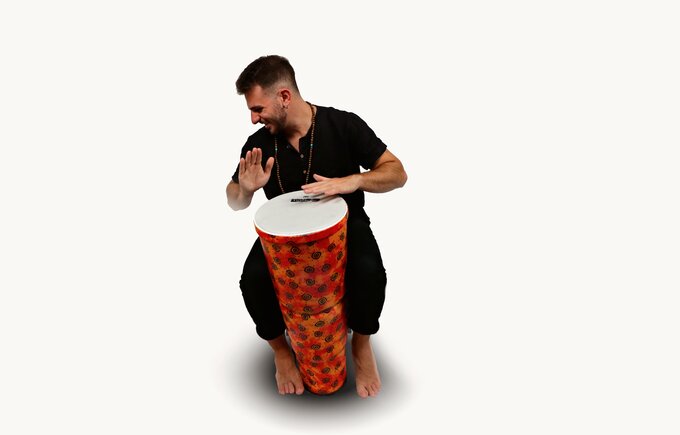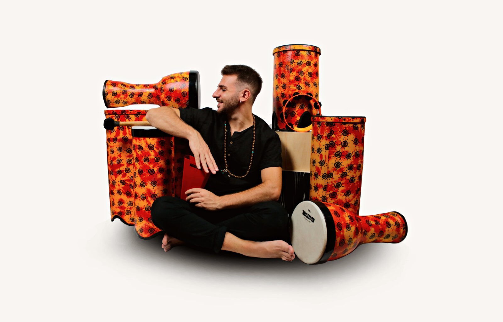 Francesco, performing a West-African groove on different Meinl VivaRhythm instruments.