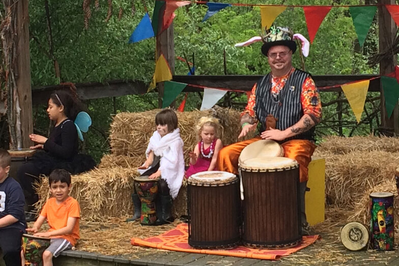 Drumming is a great equalizer where everyone regardless of age or ability has a place in the circle. Through this work, Everybody Drum offers icebreakers for corporate events, community drum circles and instruction, private lessons, and therapeutic experiences. Ken is also a staple of the east coast festival scene by performing annually at 'Spoutwood Fairie Festival', 'Baltimore Fairie Faire', 'Maryland Fairie Festival', 'FairieCon', and many more music and arts festivals.