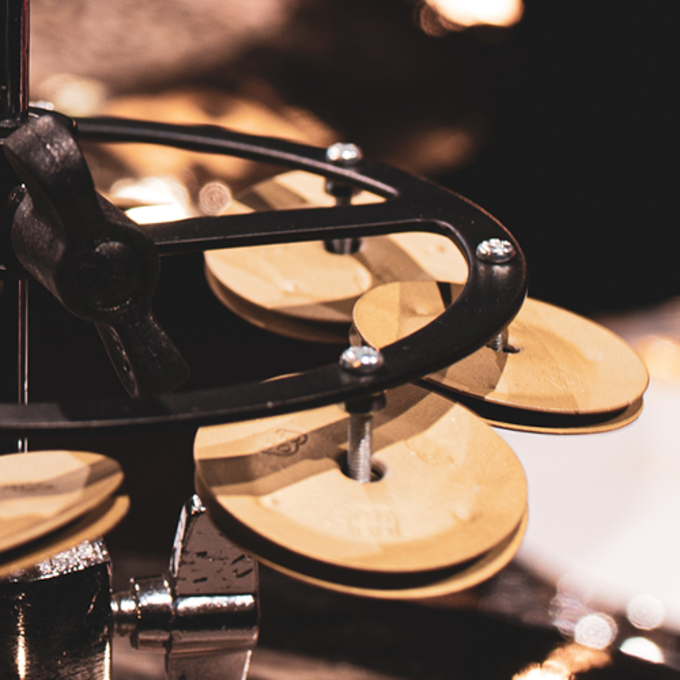 Eight pairs of solid brass sandblasted jingles create a small chorus of sound that reacts with precision to your hihat foot patterns.
