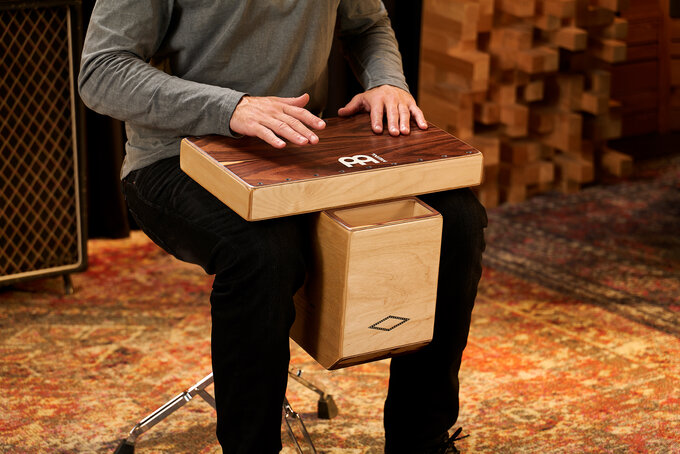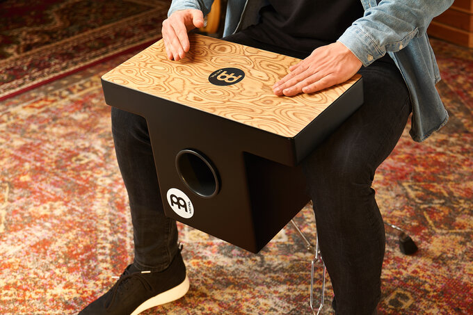 The T-shaped Meinl Slaptop Cajon is one of our research and development departments’ greatest achievements which we hold the patent for. It’s designed to bring the playing surface near to the player so he does not have to lean forward when playing, making it far more ergonomic than a normal cajon. The upright playing position is very pleasing for your back. In terms of sound, the Slaptop Cajon is very close to the traditional cajon.
