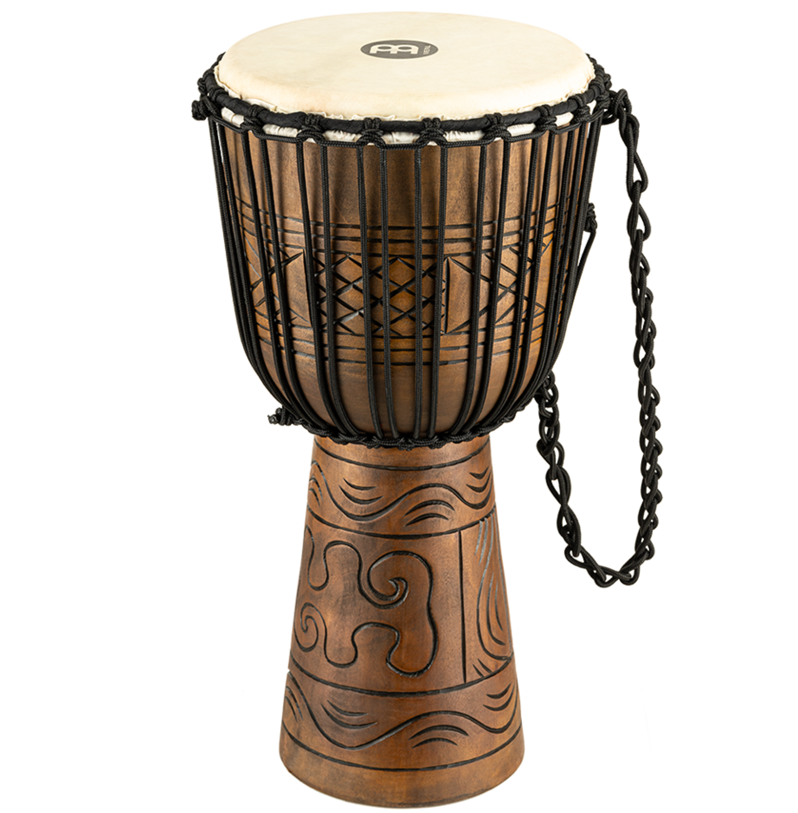 The Meinl Headliner Series rope tuned mahogany wood djembes are a staple in the vast array of djembe styles due to their traditional build, materials and classic sound.