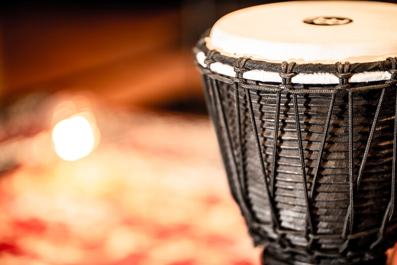 Its warm and resonant bass tones with popping accents are due, in large part, to the use of natural goat skin heads, a tradition of West African culture.