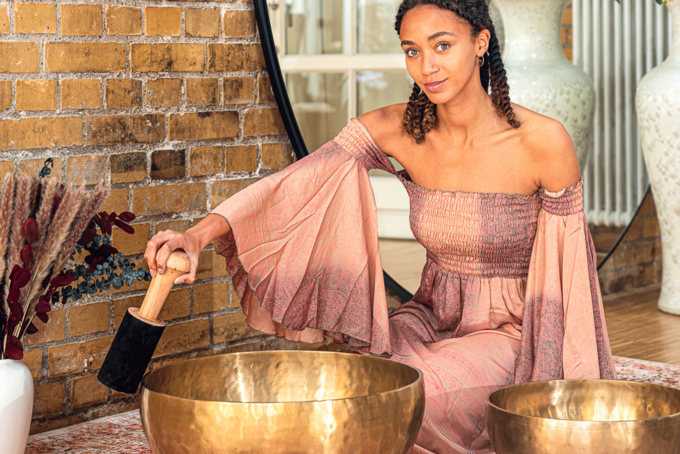 Move tibetan singing bowls around freely during sound baths and therapy to focus sound and energy on different parts of the body.