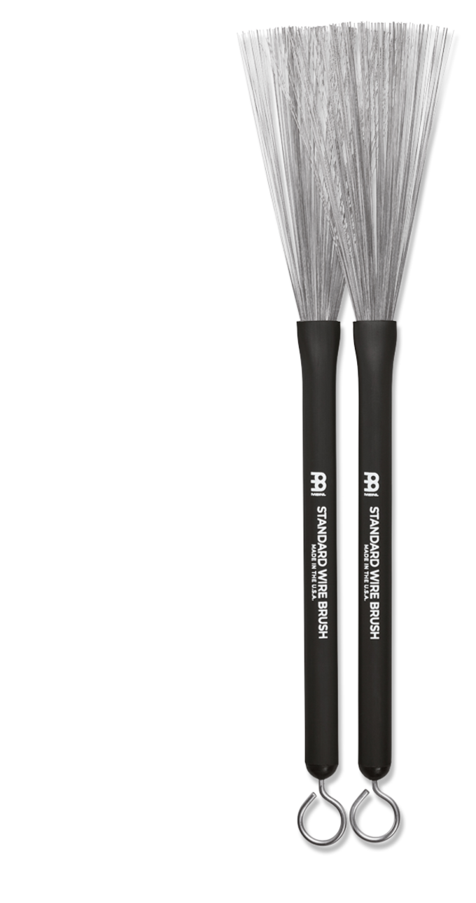 Brushes use very soft and flexible materials which are typically fanned out, but can also be bundled together. Materials found in brushes consist of metal and nylon wires, bamboo and straw. Metal wires generate snappy and crisp slaps as well as lush sweeping tones. Nylon wires provide both flexibility and durability with a warmer sound. Straw material creates a unique soft attack and fat warmth.